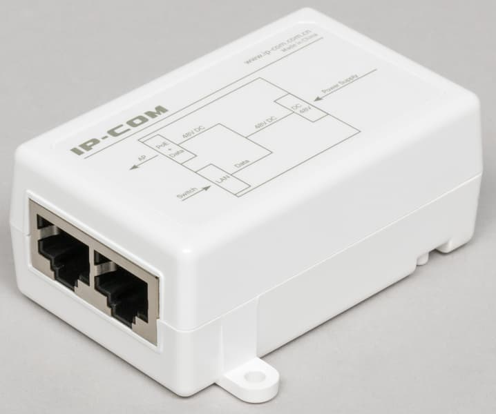 Для питания здесь есть только технология PoE 802.3at, так что можно использовать или соответствующий коммутатор, или входящие в комплект инжектор и блок питания. Компактный инжектор может быть закреплен винтами.