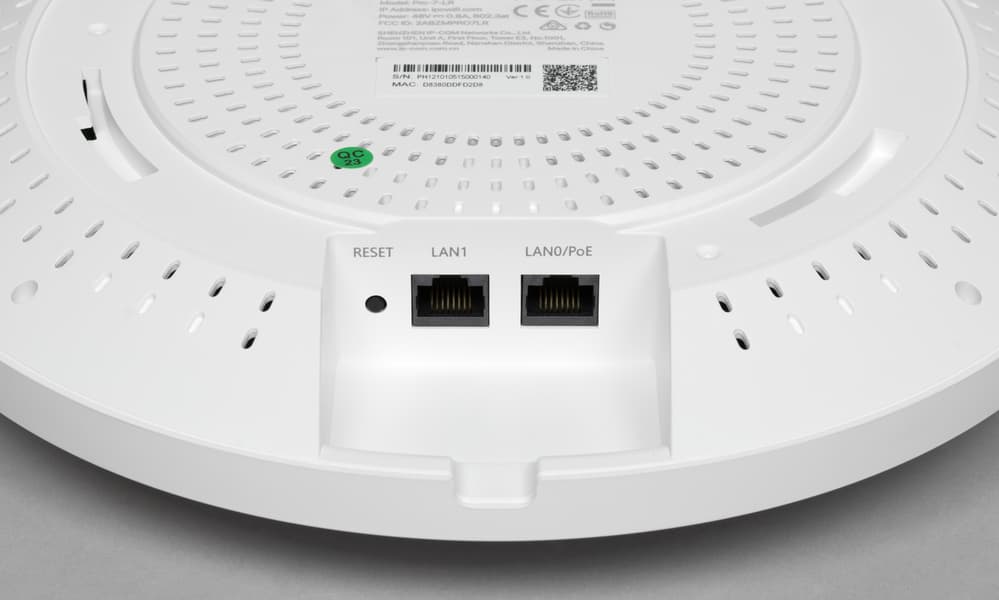 В нише на другой стороне находится скрытая кнопка сброса и два сетевых порта — один на 2,5 Гбит/с с PoE для питания точки и второй на 1 Гбит/с, если вдруг потребуется подключить рядом еще какое-то оборудования. Питание на него не транслируется.