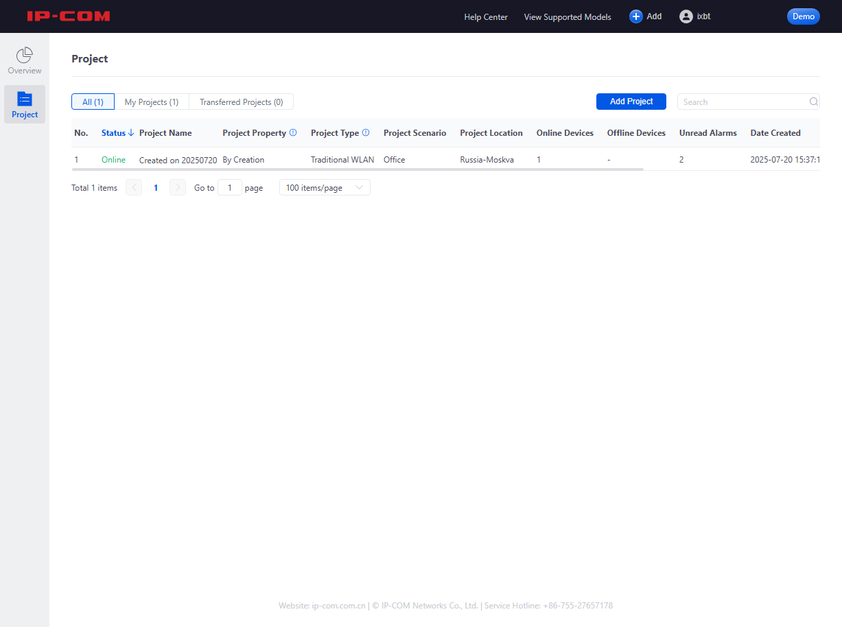 Один из вариантов подключения мы описали ранее — нужно через веб-интерфейс точки доступа указать уникальный код облака. Облачный сервис использует для описания конфигураций схему с проектами. Можно на одном аккаунте иметь несколько разных проектов с собственными наборами точек доступа и настройками беспроводных сетей.