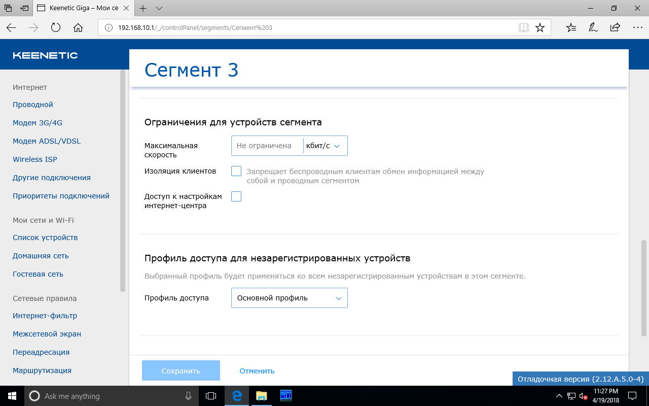 В базовой настройке роутер предоставляет доступ к двум сегментам локальной сети — домашнему и гостевому. При необходимости можно создать и другие. В настройках можно указать собственные имена и настройки беспроводных сетей, расписание их работы, ограничить скорость доступа к интернету или совсем запретить его, выбрать проводные порты, настроить VLAN.