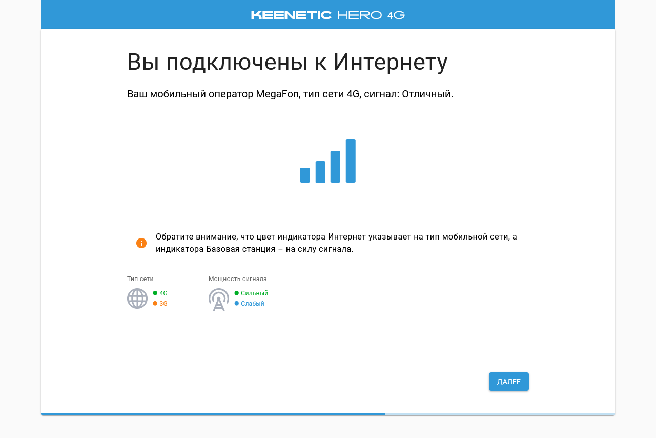Заодно можно по цвету индикаторов на корпусе роутера проверить режим (4G/3G) и уровень сигнала (сильный/слабый).