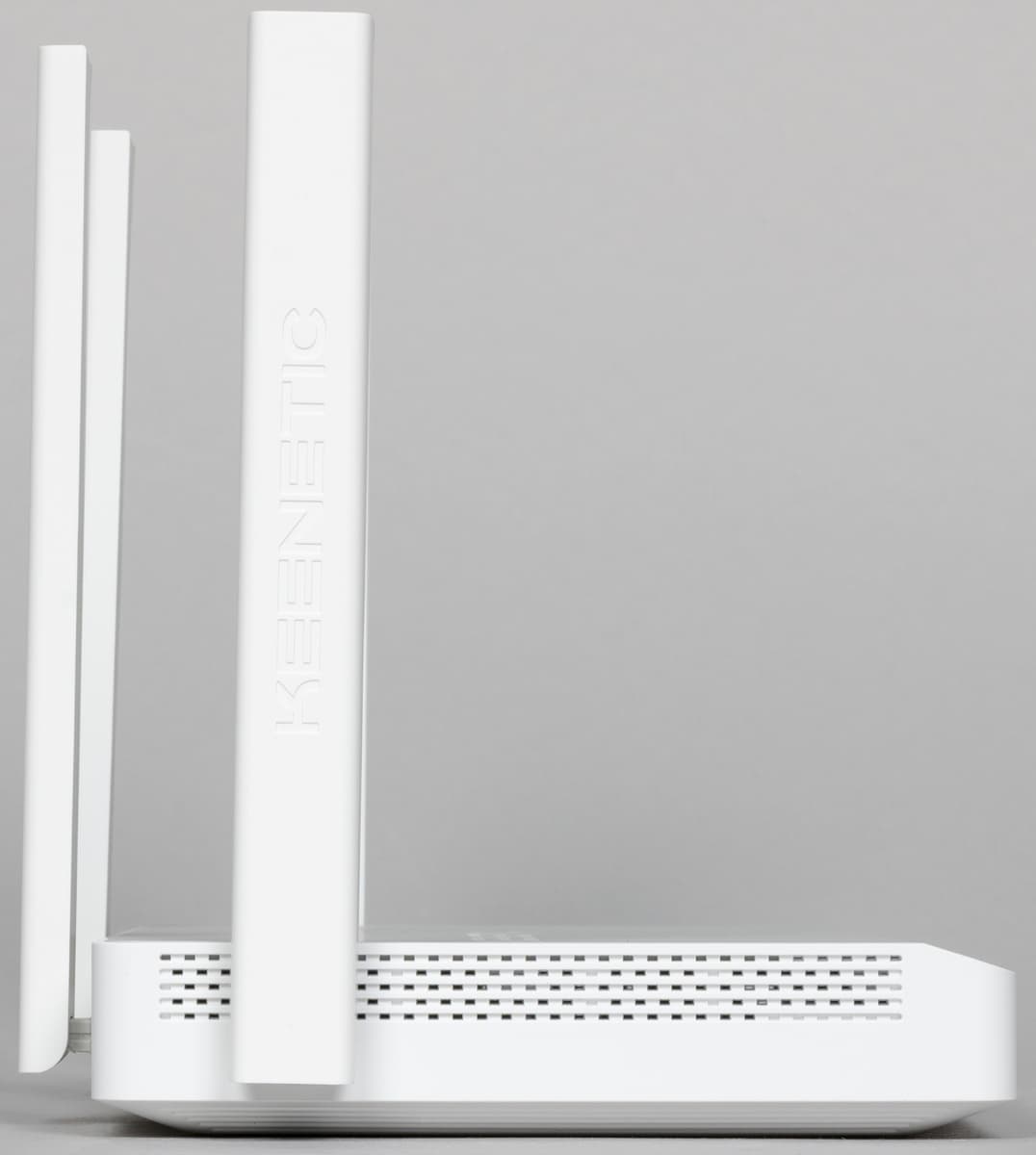 Беспроводная часть основана на MT7905, которому помогает FEM MT7975. Это чип реализует работу сразу двух диапазонов по две антенны (5 дБи) в каждом. Итоговая формула класса AX1800 аналогична всем текущим моделям Keenetic с Wi-Fi 6 — 802.11b/g/n/ax до 574 Мбит/с в 2,4 ГГц и 802.11a/n/ac/ax до 1201 Мбит/с в 5 ГГц. К сожалению, HT160 здесь тоже нет.