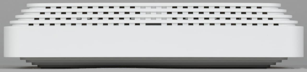 В ней кроме входа питания и пары RJ45 (без индикаторов) находятся кнопка управления (действия настраиваются), скрытая кнопка сброса и переключатель режима. Последний позволяет добавить новый узел в существующую сеть Mesh без обращения к веб-интерфейсу. Также здесь мы видим традиционную информационную табличку, где, в частности, указаны уникальные имя и пароль беспроводной сети.