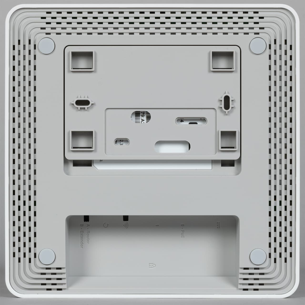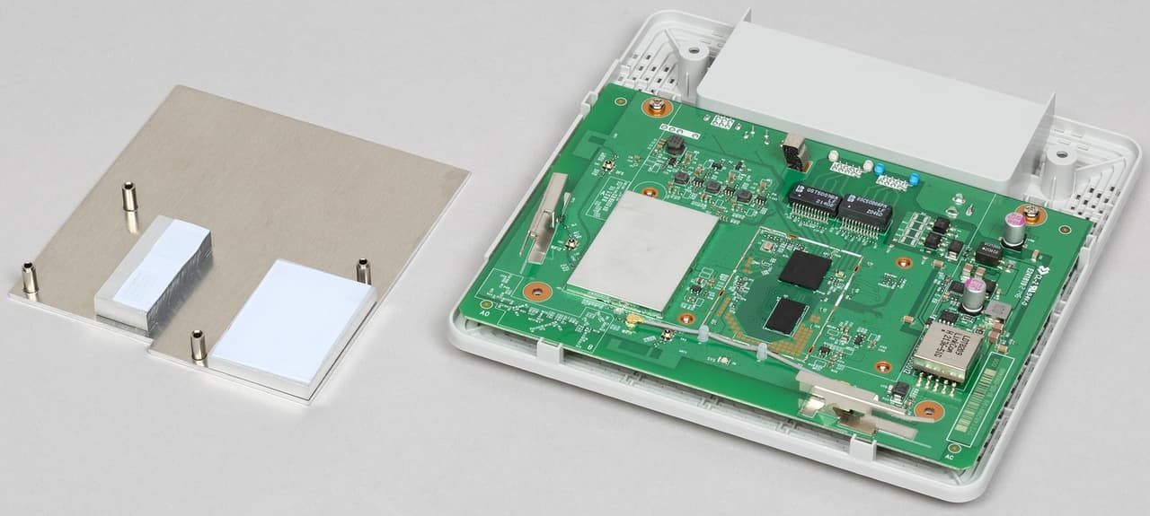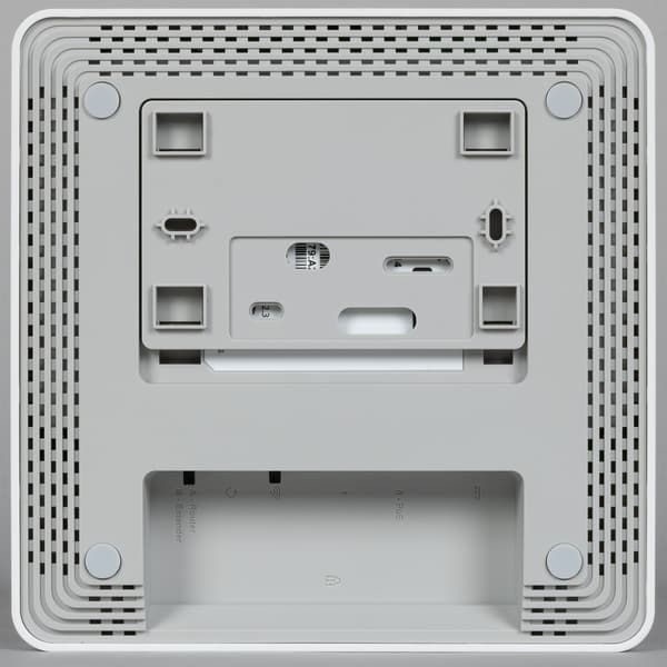 Модели имеют корпус из матового пластика. Верхняя часть белая, а дно светло-серое. Габаритные размеры составляют 170×170×38 мм. В этот раз мы уже не говорим, что это без учета подключения кабелей и антенн, поскольку антенны встроенные, а кабели подключаются в нише на дне корпуса.