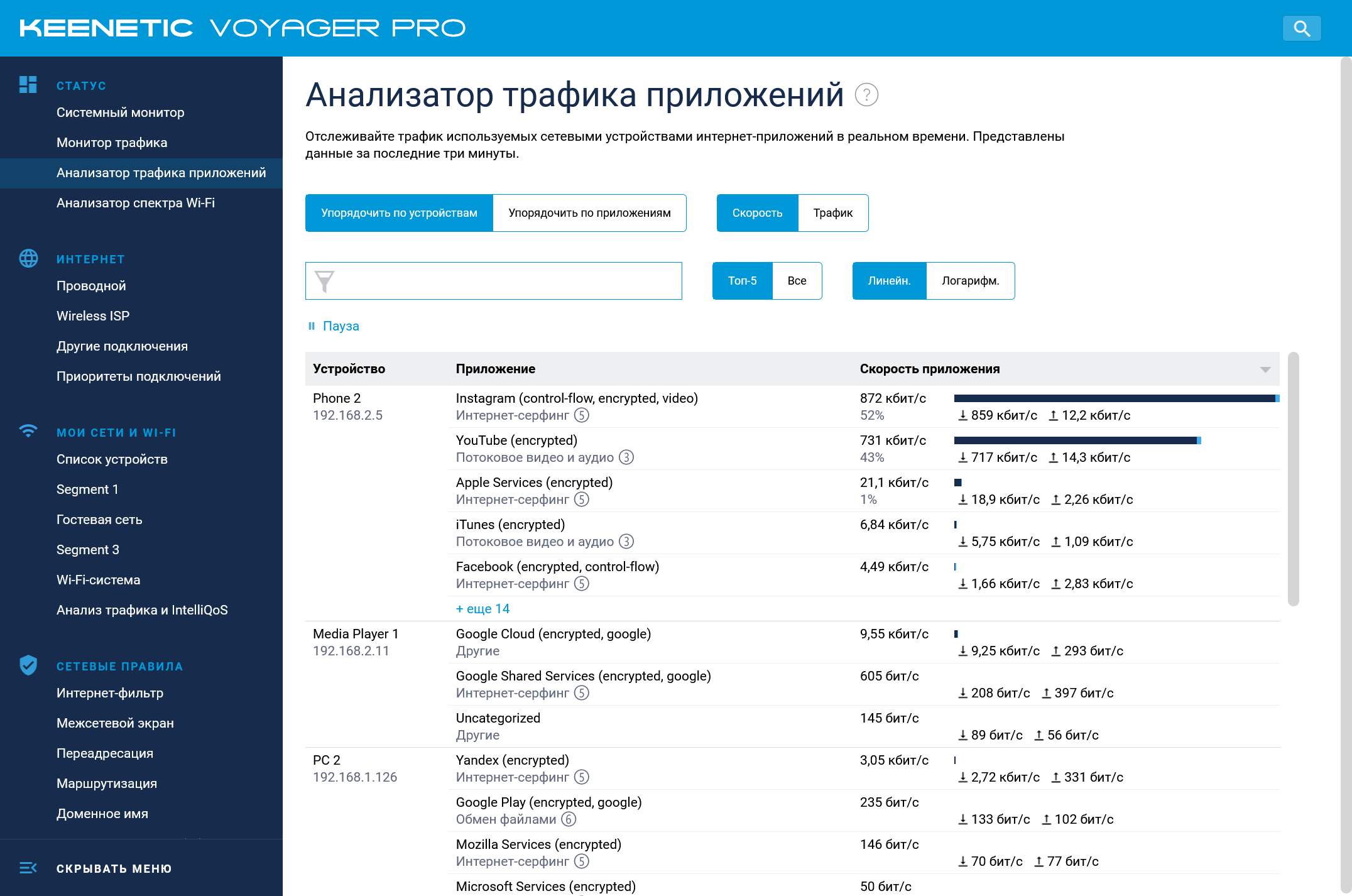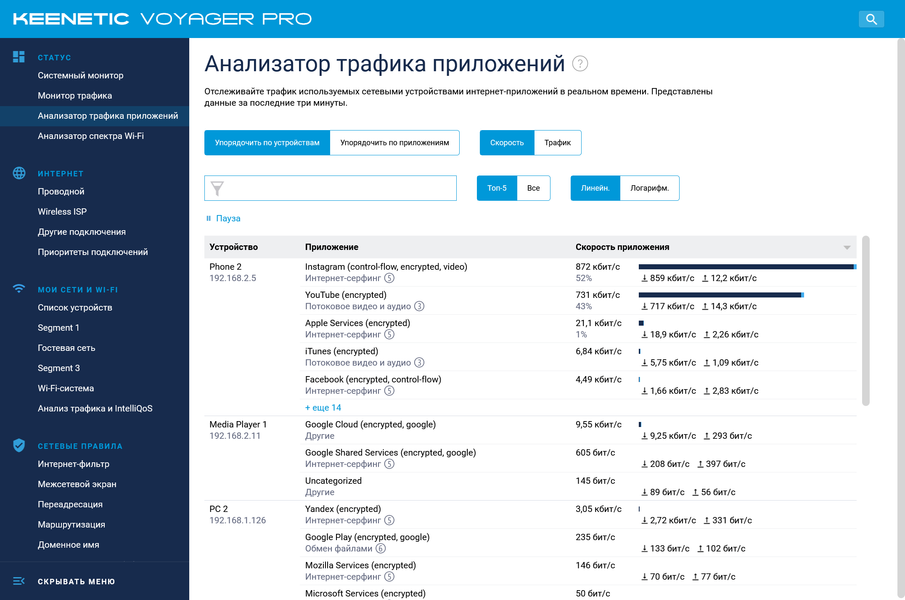 В итоге действительно рассказывать именно о возможностях встроенного ПО в данной статье получается и нечего. Стоит если только упомянуть об относительно недавно реализованной системе мониторинга и приоритизации трафика на основании сигнатур приложений.