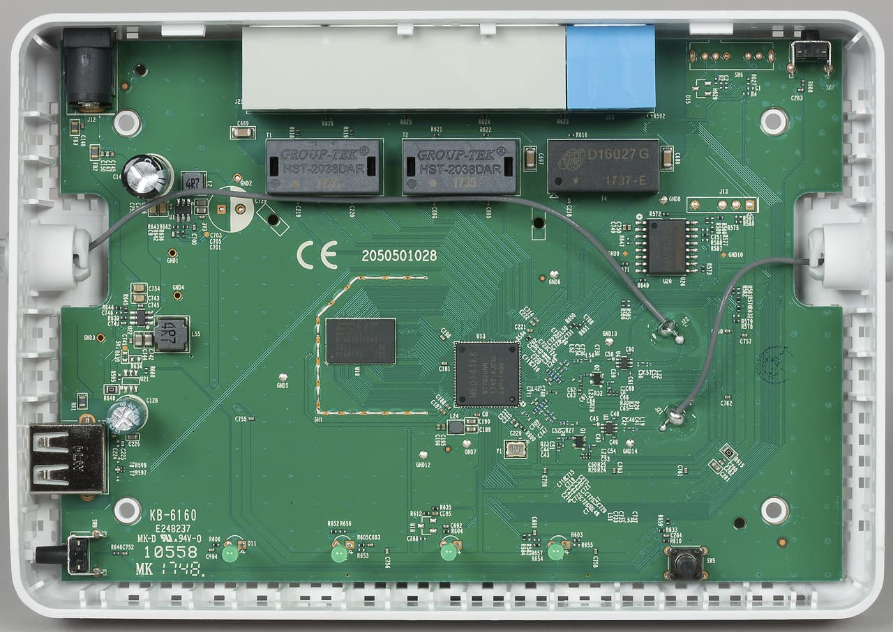 Хотя на самой SoC можно сделать до пяти сетевых портов со скоростями работы 100 Мбит/с, в модели Keenetic Start установлено только четыре, а вот Keenetic Omni имеет уже привычную схему 1+4. Кроме того, в последнем есть универсальный порт USB 2.0 с поддержкой накопителей, сотовых модемов, принтеров и фирменных модулей Keenetic Plus.