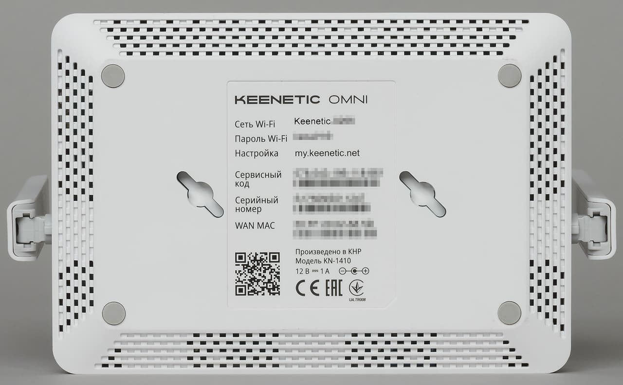 На дне предусмотрены четыре резиновые ножки для установки на горизонтальной поверхности и два отверстия для крепления на стену. Также здесь присутствует знакомая наклейка с данными об устройстве и кодом для подключения к его беспроводной сети. На боковых сторонах и на дне есть решетки пассивной вентиляции. Причем снизу есть дополнительные скосы, так что блокироваться решетки не будут, даже если роутер положить на что-то мягкое. Учитывая небольшое потребление платформы, нагревается модель во время работы слабо.