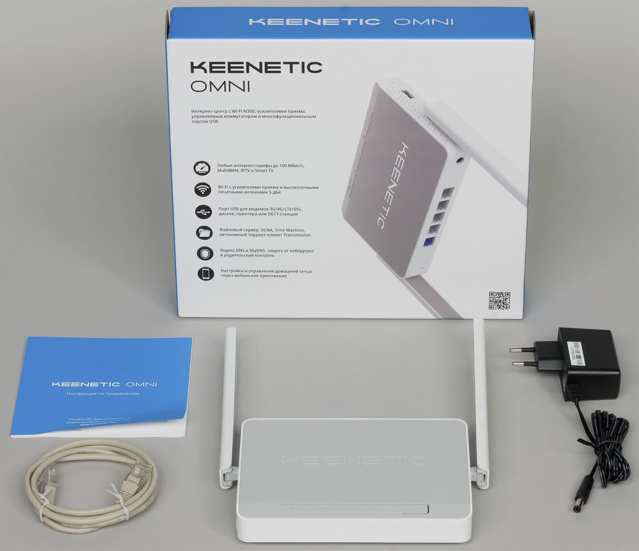 Комплекты поставки также стандартны: роутер, внешний блок питания (9 В 0,6 А для Start и 12 В 1 А для Omni) для установки в розетку, сетевой патч-корд, печатная инструкция на русском языке. Последняя содержит не только информацию по подключению роутера, но и рекомендации по оптимизации сети, решению возможных проблем, ссылки на ресурсы поддержки.