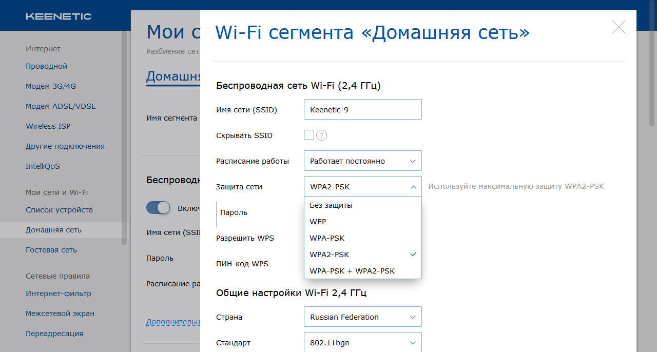 Работа с беспроводными сетями, несмотря на формально только начальный уровень непосредственно аппаратной реализации, выполнено на том же уровне, что и у топовых устройств. Предусмотрена работа с несколькими сегментами, причем их число может быть и больше двух (обычная и гостевая сети).