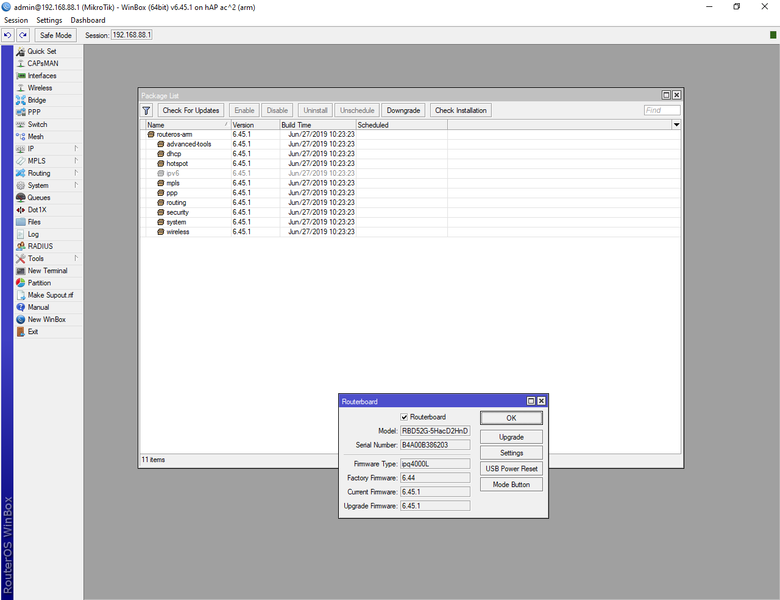 Тестирование роутера проводилось с прошивкой версии 6.45.1.