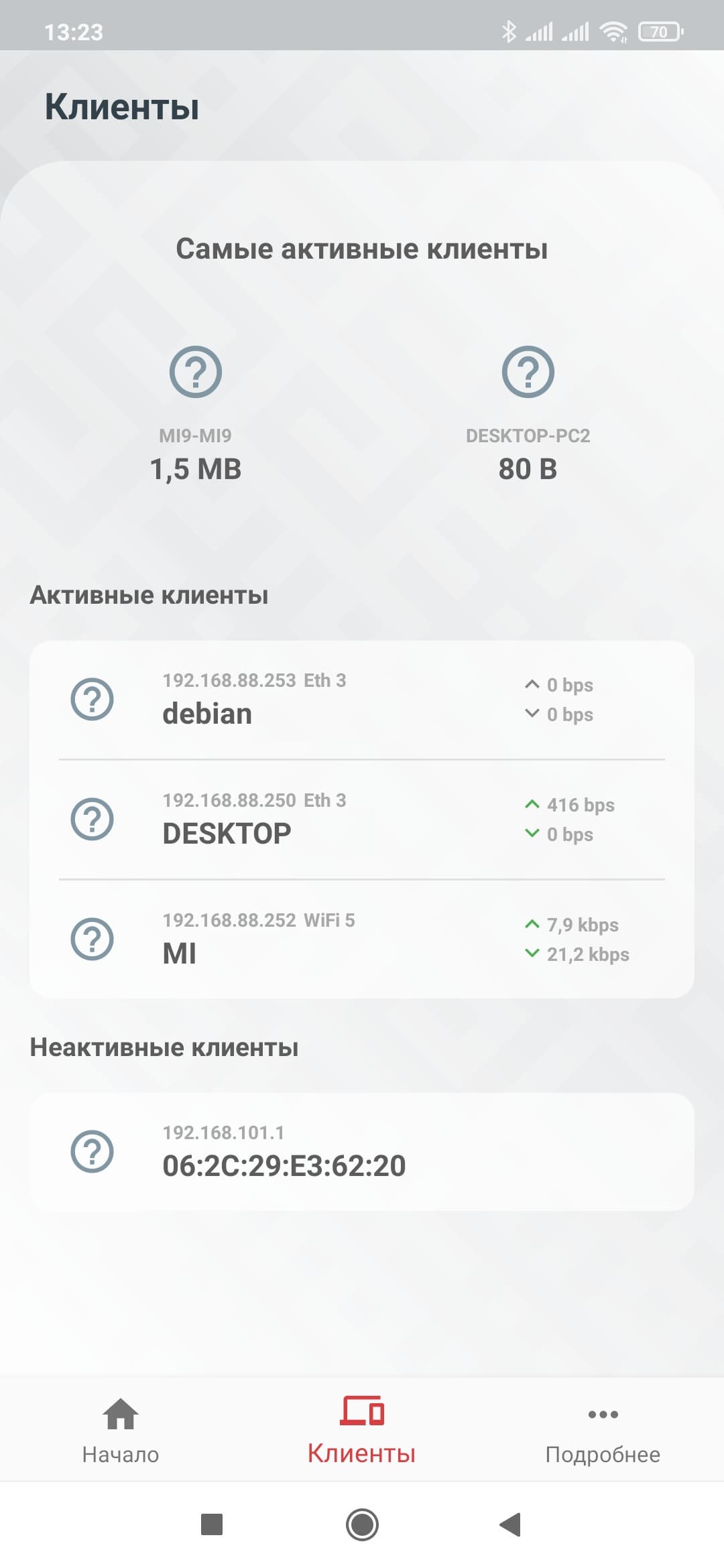 Для этого предлагается использовать меню в нижней части страницы. На странице «Клиенты» приводится список подключенных к роутеру устройств с указанием типа (порта, диапазона) подключения. При клике на конкретном клиенте будут показаны более подробные данные о нем. Здесь же можно изменить отображаемое имя и назначить значок по типу клиента. Опции блокировки или ограничения доступа здесь нет.