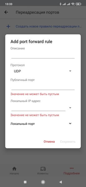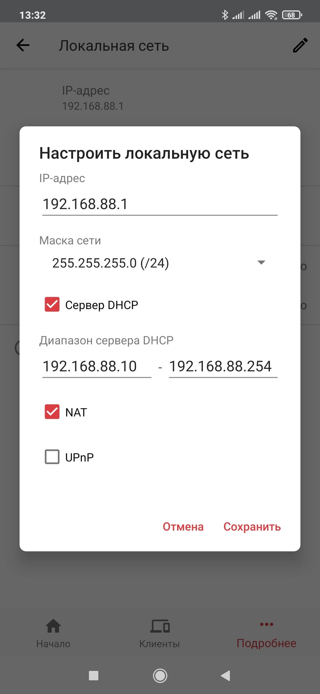 Есть возможность изменить настройки адресов и для локального сегмента сети, а также отключить NAT и включить UPnP.