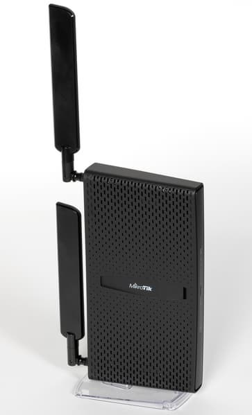Внешне MikroTik hAP ac³ напоминает подросший в пару раз MikroTik hAP ac². Габаритные размеры без учета антенн и кабелей составляют около 250×130×40 мм. Антенны в этой модели внешние и достаточно крупные — длина подвижной части почти 20 см. Они имеют по две степени свободы.
