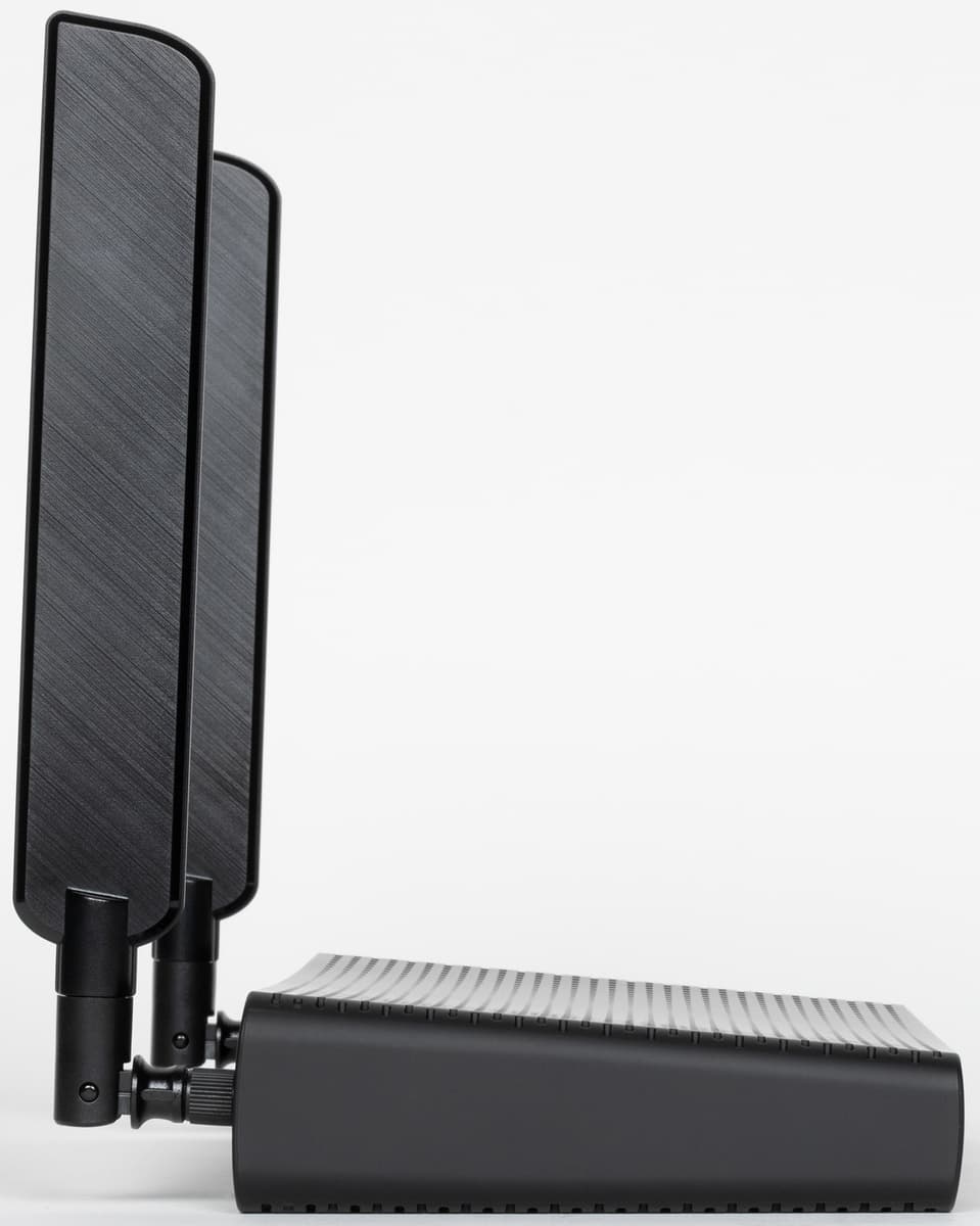 Корпус имеет необычную «непрямоугольную» форму. Основной вариант размещения — горизонтально или вертикально на столе. При этом используется подставка, оборудованная резиновыми ножками и специальными элементами для сопряжения с основным корпусом. Также с ее помощью можно закрепить роутер на стене.