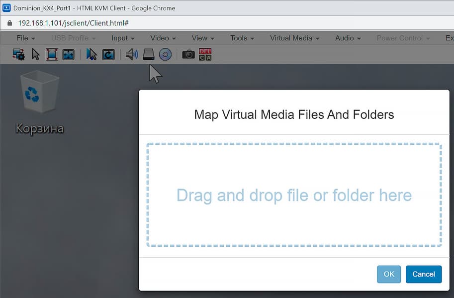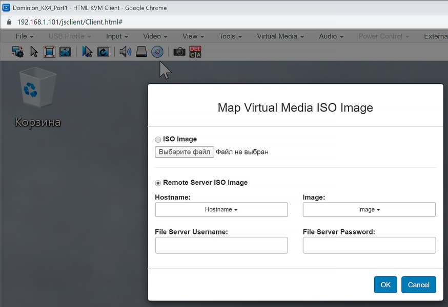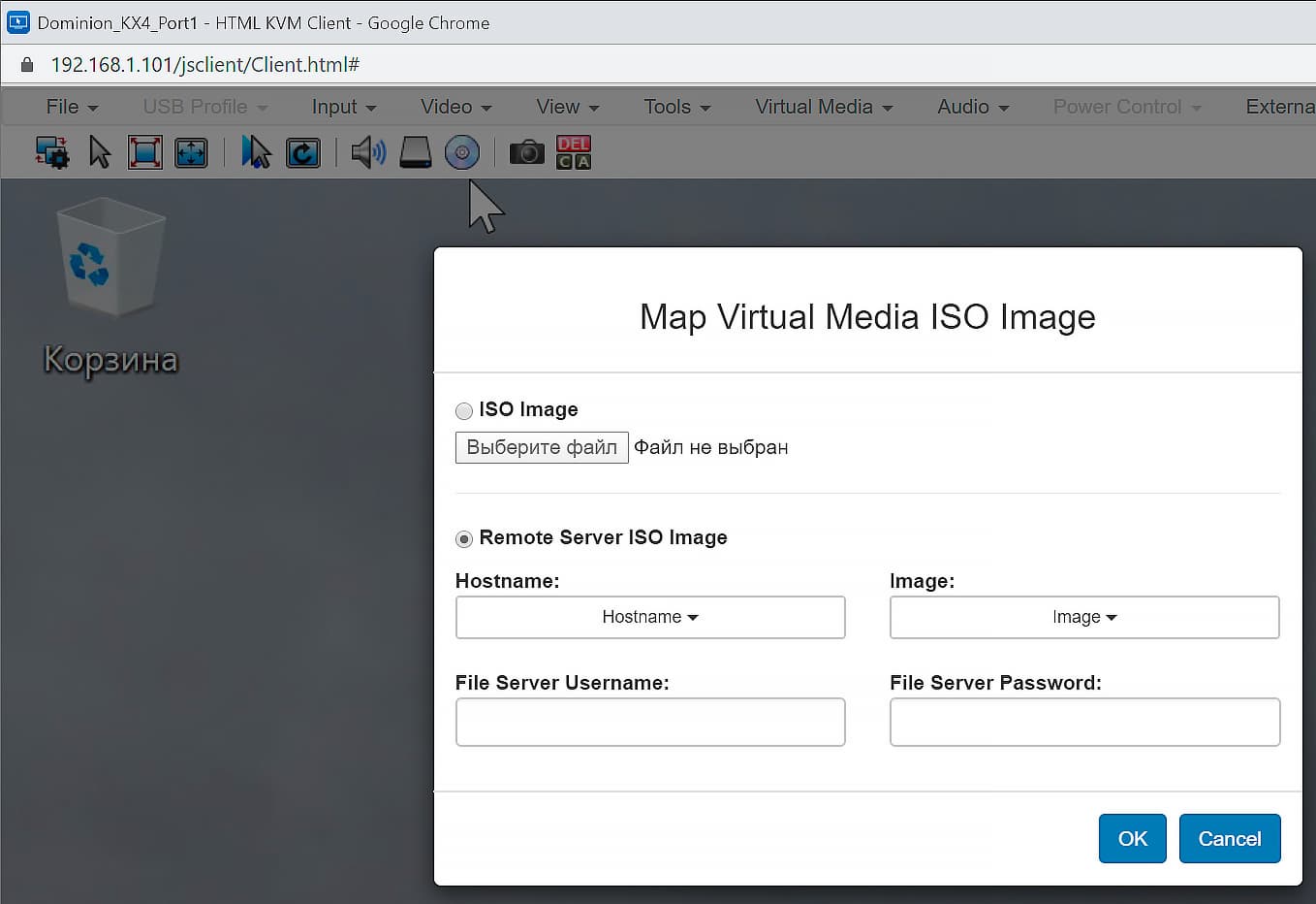Как всегда, по умолчанию передача аудио с удаленного десктопа отключена, ее нужно подключать вручную. Двумя соседними кнопками можно подключить к удаленной системе в виде диска любой локальный каталог или даже ISO-файл.