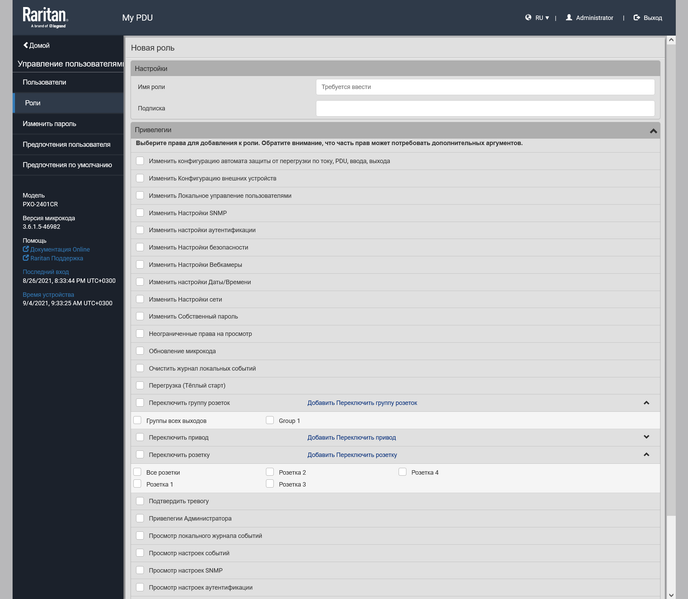 То есть сначала вы настраиваете роль указывая какие возможности получения информации и управления устройством ей будут доступны, а потом создаете пользователя и назначаете ему роль.