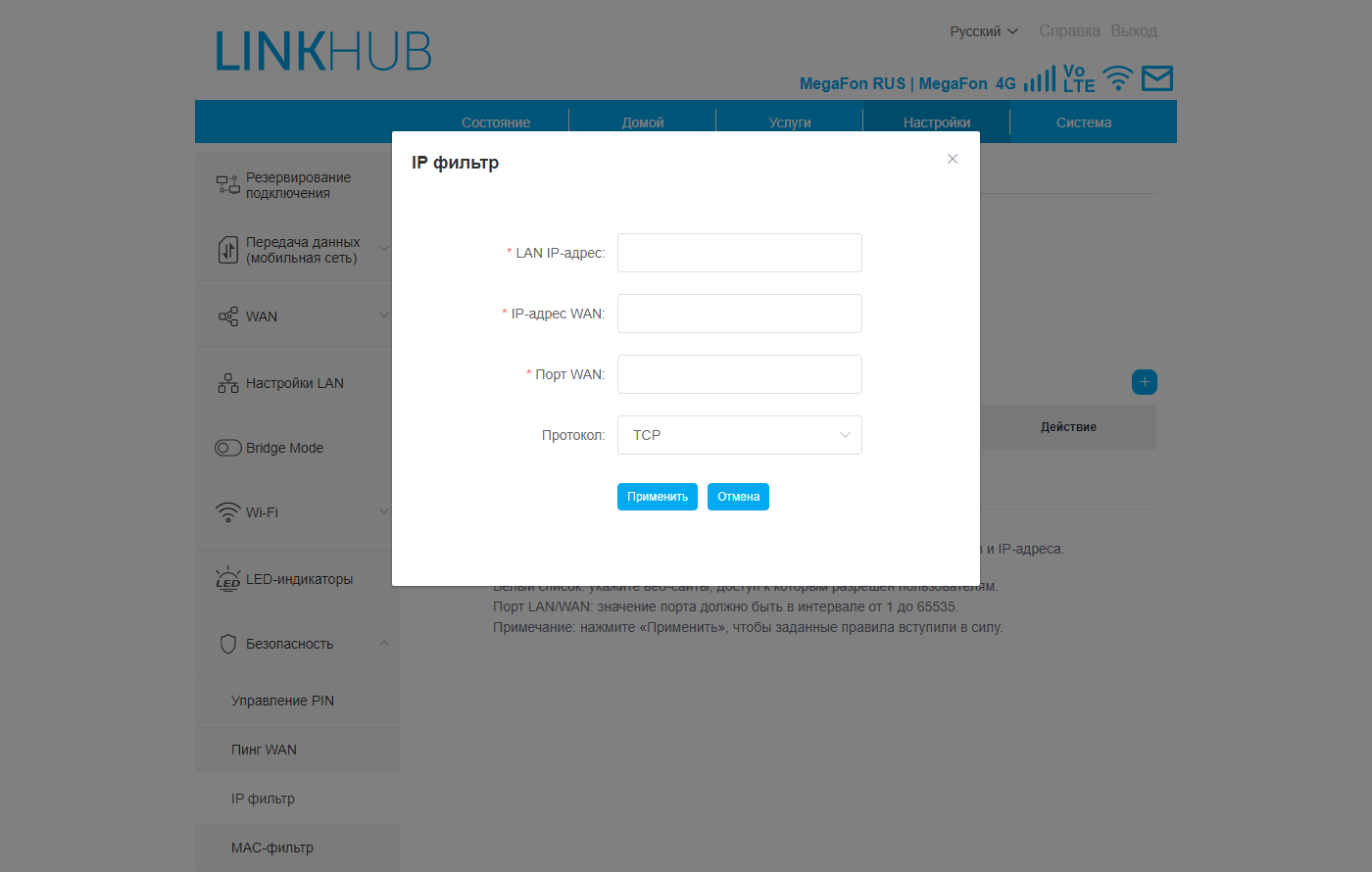 В разделе «Безопасность» более дюжины страниц. В частности, это управление PIN-кодом SIM-карты, разрешение ping со стороны порта WAN, отключение межсетевого экрана.