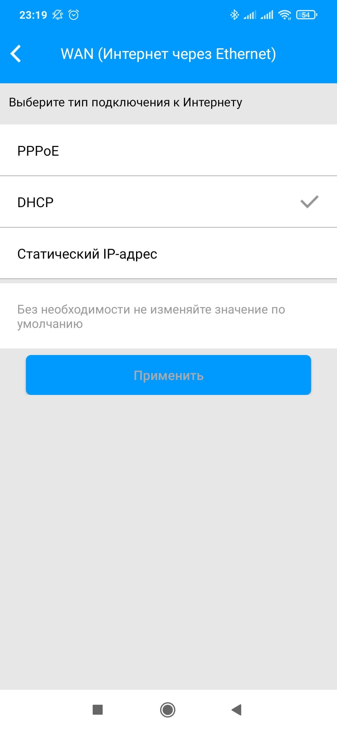 Проводное подключение к провайдеру может работать в режимах IPoE с динамическим или статическим адресом, а также как клиент PPPoE. Есть возможность смены MAC-адреса порта WAN. Обратите внимание, что поддерживается только IPv4.