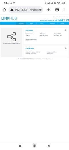 Основное меню состоит из пяти разделов. Первый, «Состояние», представляет собой, по сути, одну страницу. Он поможет оценить текущий статус устройства и подключения к интернету.