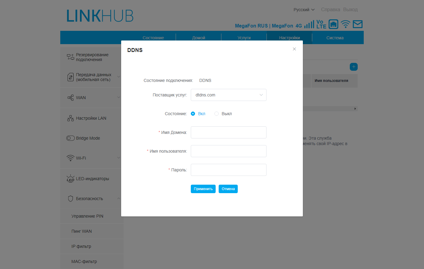 Встроенный клиент DDNS поддерживает четыре сервиса. Напомним, что сегодня большинство провайдеров и сотовых операторов выдают клиенту «серые» адреса, что делает невозможным использование DDNS.