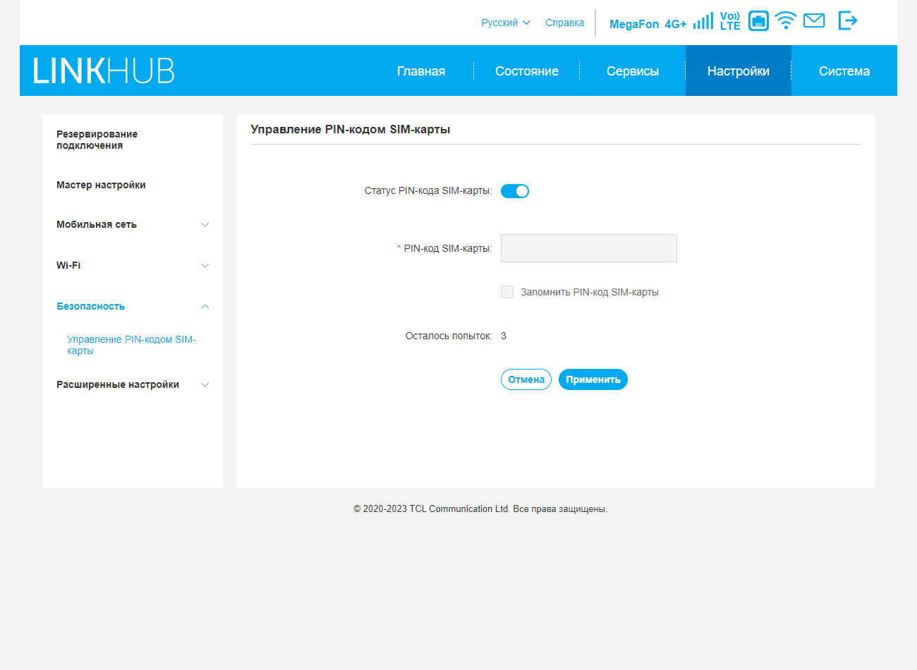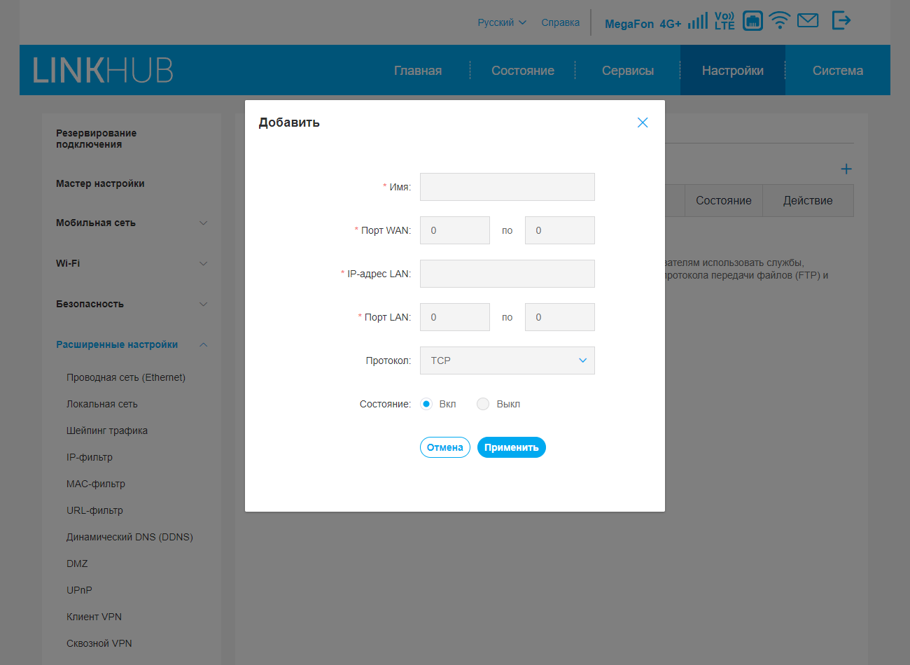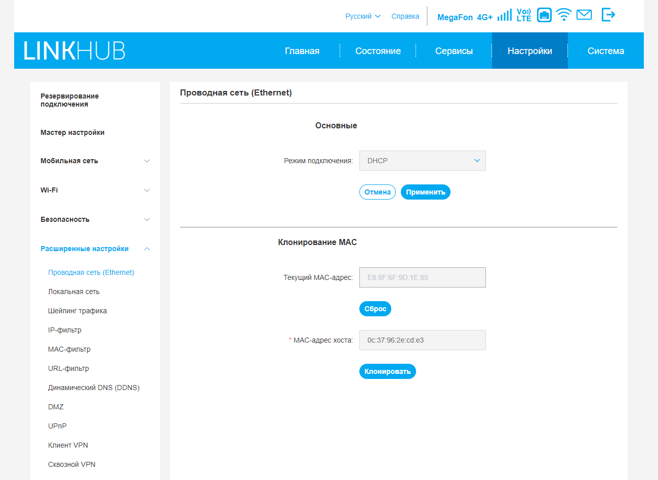 Остальные настройки менее интересны: выбор режима NAT, регулировка MTU/MRU и TTL для сотовой сети, отключение межсетевого экрана SPI, автоматическое отключение индикаторов, переключение устройства в режим моста.