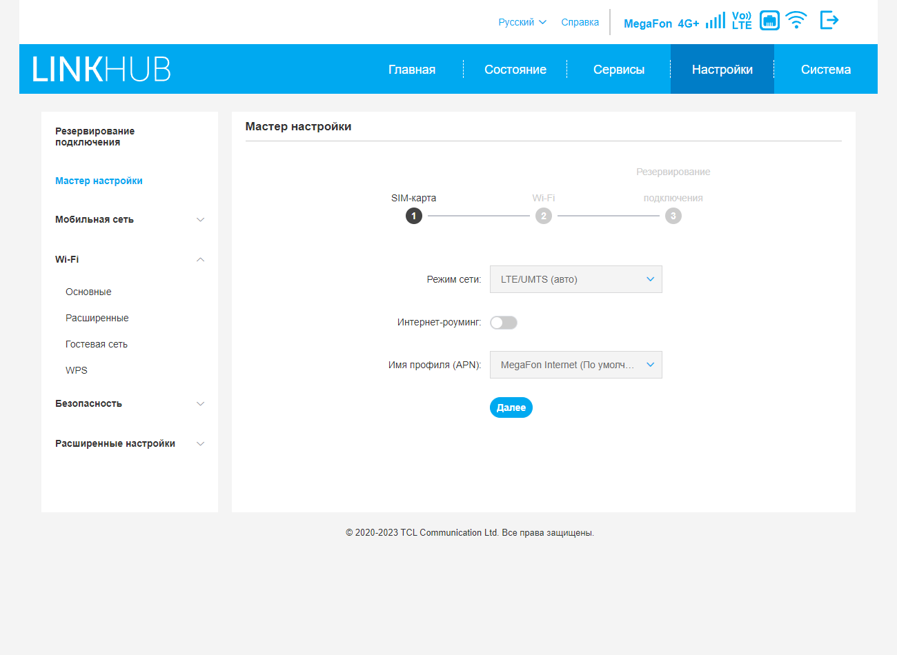 Если нужно что-то изменить или донастроить — используется традиционный веб-интерфейс или фирменное мобильное приложение. Оба варианта поддерживают русский язык. Первый доступ к настройкам осуществляется со стандартным паролем, который сразу предлагают изменить. В веб-версии предусмотрен мастер настройки, где обычно достаточно просто выбирать «Далее».
