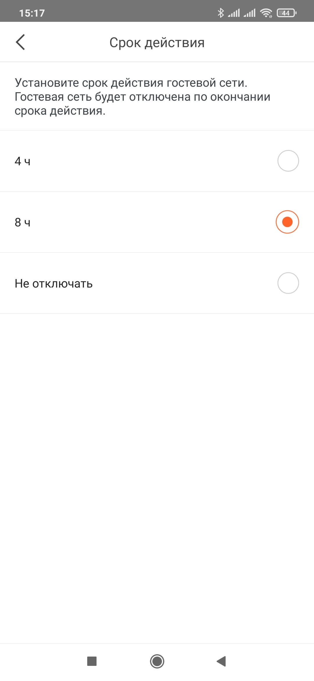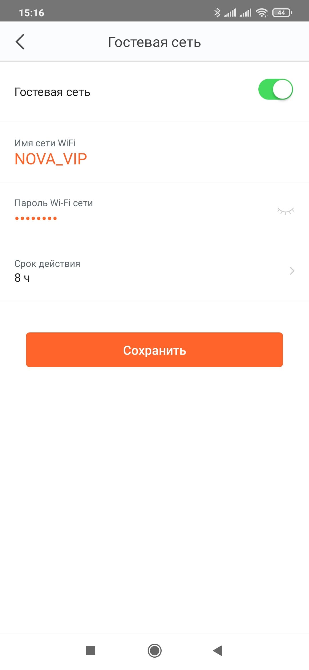 На следующей странице можно включить гостевую беспроводную сеть. Для нее также есть выбор имени и пароля. Плюс можно установить время работы на 4 или 8 часов с последующим автоматическим отключением.