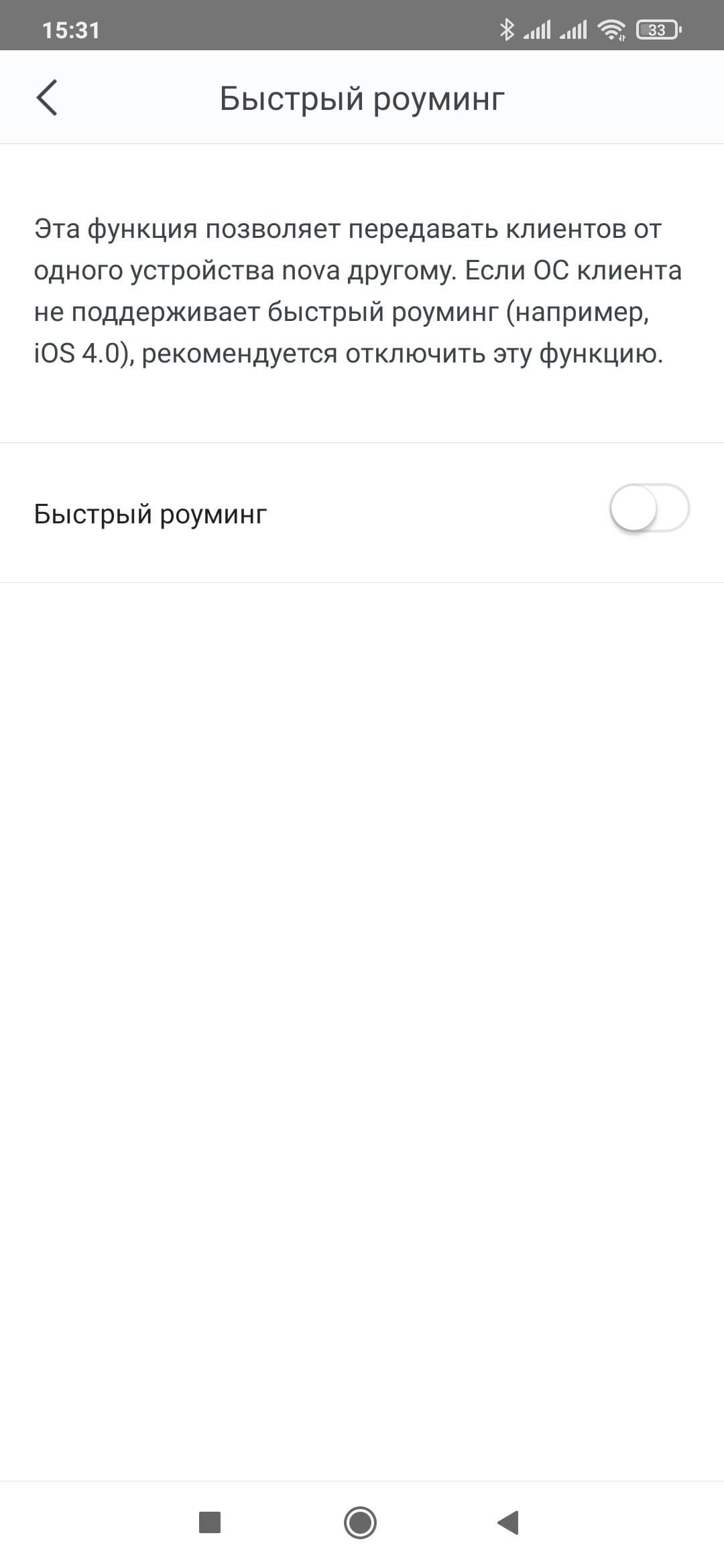 Под «Быстрый роуминг» вероятно подразумевается использование протоколов 802.11k/v/r для переключения клиентов между узлами. По умолчанию, он выключен. Тогда как опция «Высокая производительность» в заводских настройках включена. Опытным путем было проверено, что фактически от нее зависит ширина канала для диапазоне 2,4 ГГц. Если функция включена, то канал 20 МГц и максимальная скорость подключения 144 Мбит/с, если выключена — канал 40 МГц и максимальная скорость подключения уже 300 Мбит/с.