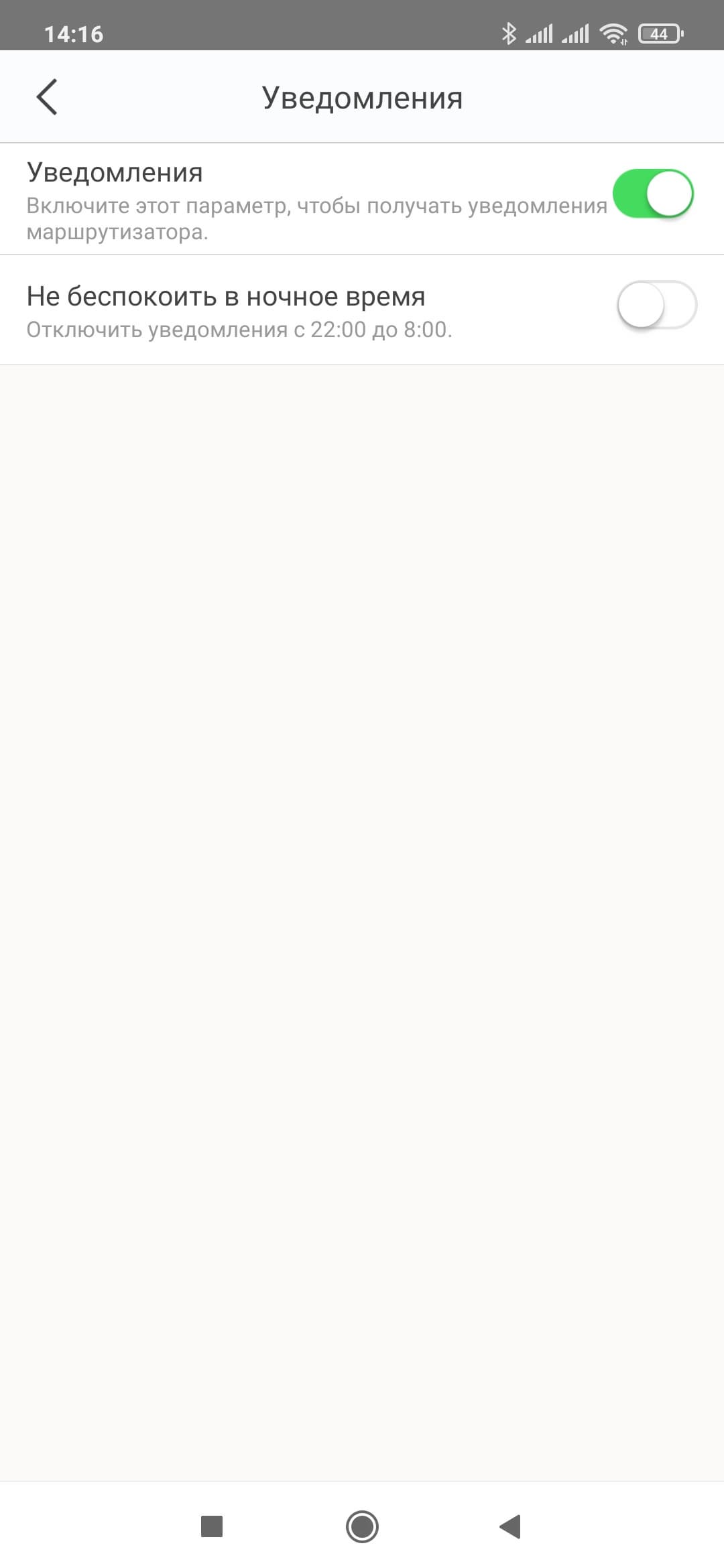 На основном экране представлена общая схема сети. В верхней части страницы слева есть значок пользовательских настроек. В нем можно включить уведомления и настроить время, когда они не будут приходить.