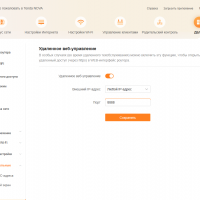Веб-интерфейс — традиционного формата. Он имеет перевод на несколько языков, включая русский. В верхней части страницы находится меню верхнего уровня из шести значков.