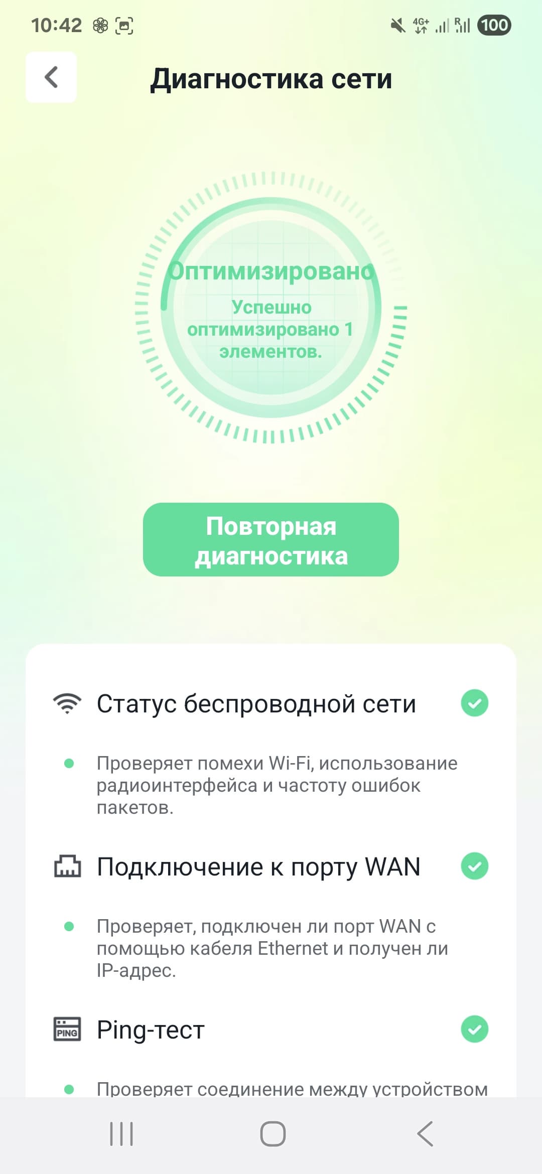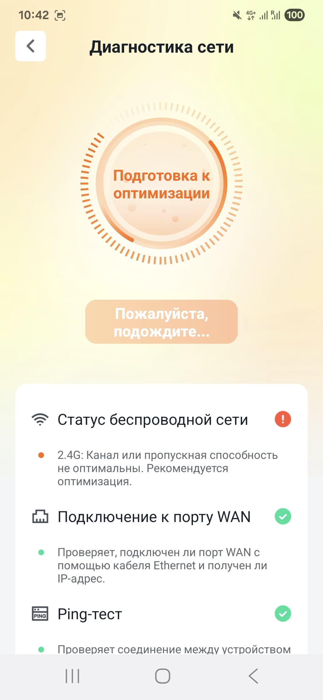 Для оперативной проверки качества работы предусмотрен пункт «Диагностика сети». На главной странице также есть кнопка «Оптимизация в одно нажатие», когда роутер оценивает состояние эфира и старается выбрать наиболее свободные каналы Wi-Fi.