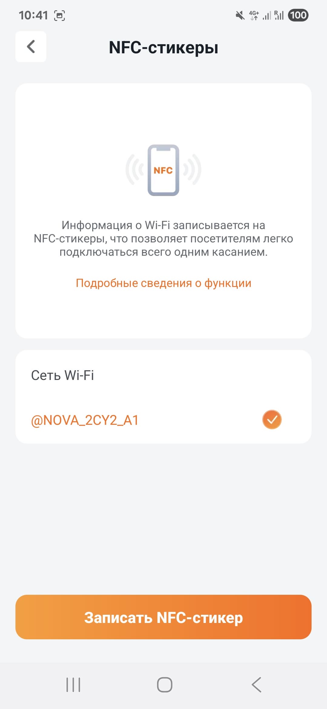Также через программу при наличии в смартфоне модуля NFC можно записать на комплектную метку имя и пароль сети для быстрого подключения совместимых устройств.
