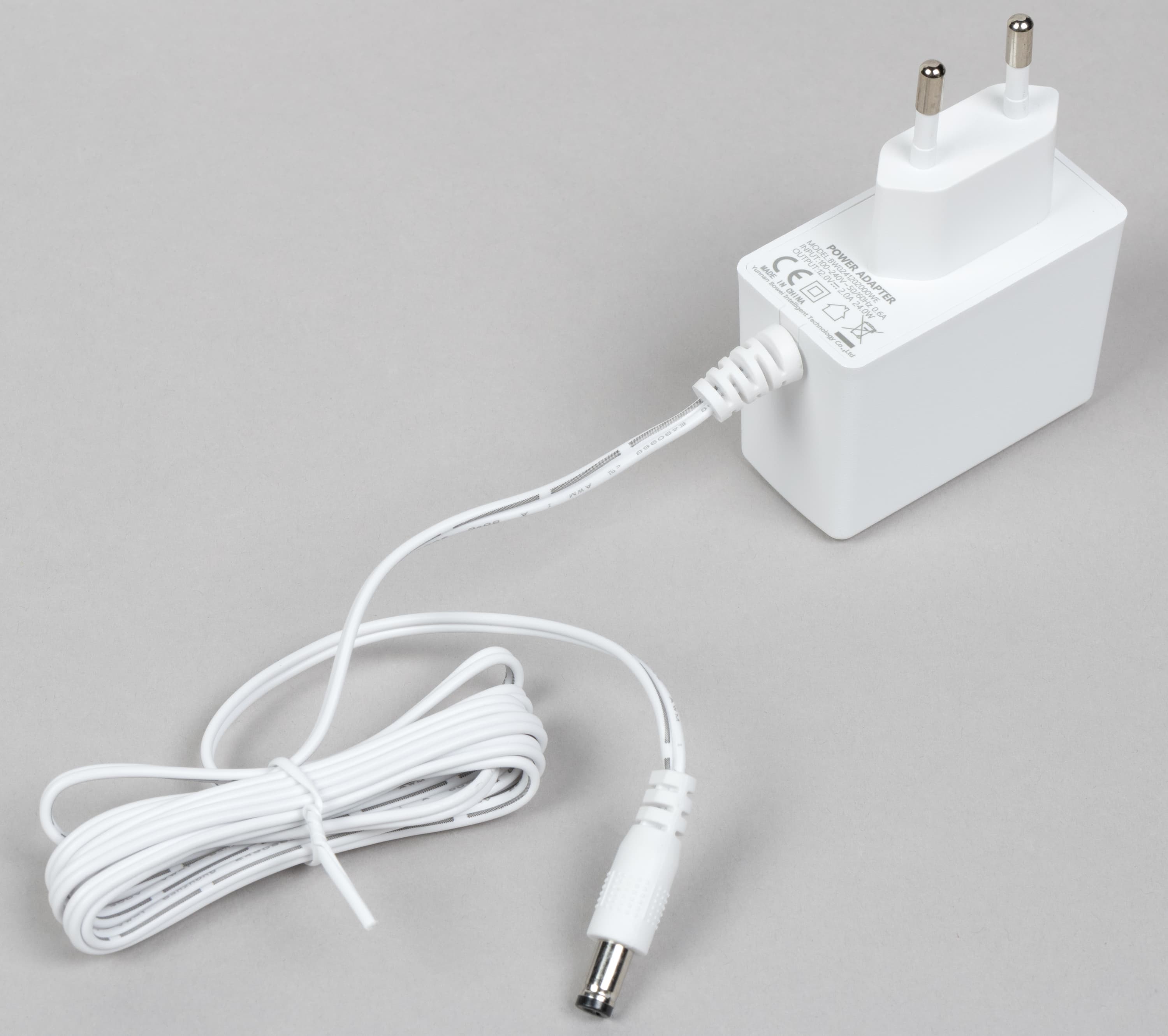 Компактные блоки питания имеют характеристики 12 В 2 А. Длина кабеля составляет полтора метра, он заканчивается стандартным круглым штекером.