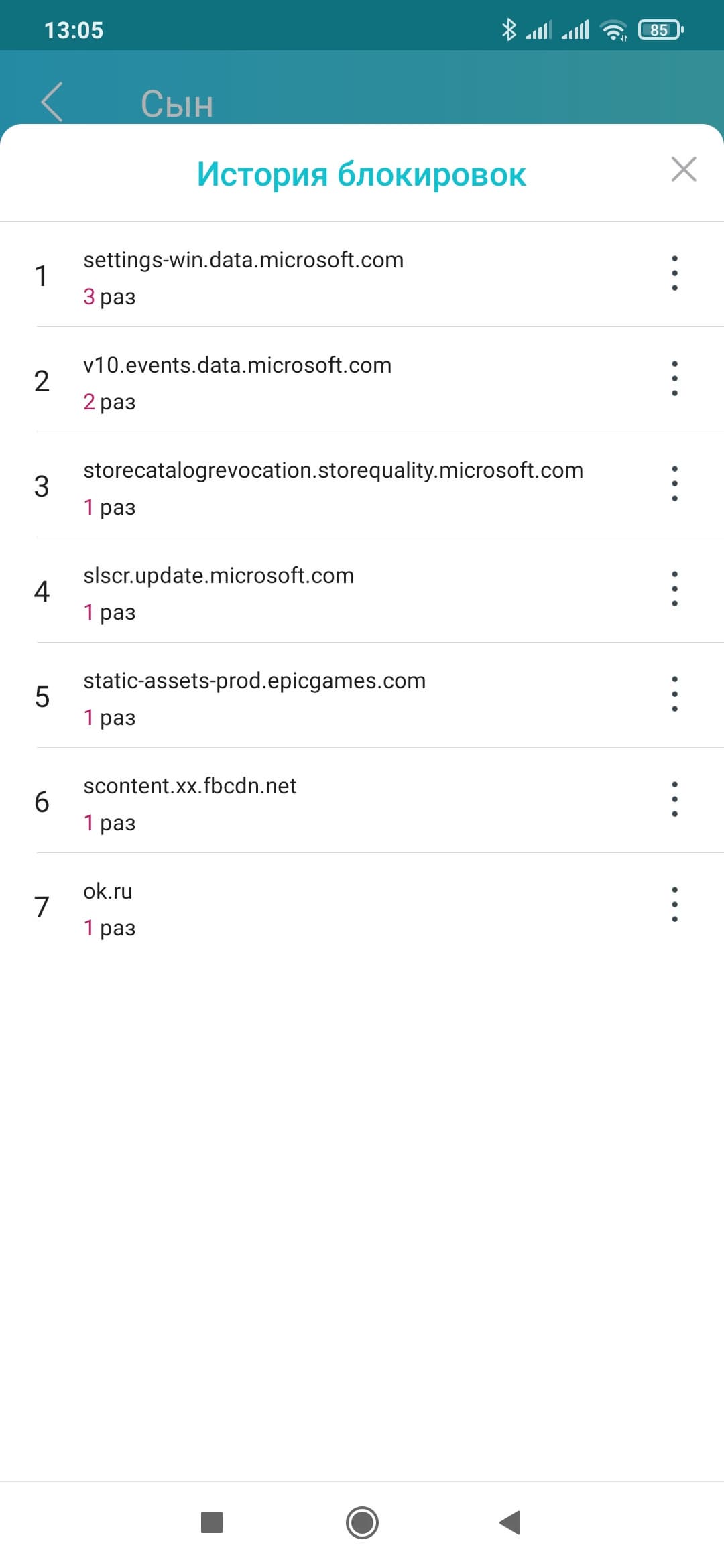 В родительском контроле появилась возможность установки ограничения на проводимое в сети время. Для этого в настройках профиля указывается длительность с точностью до получаса на все дни, значения на будни и выходные или на каждый день недели индивидуально. Функция действительно очень интересная, хотя не очень понятно, как конкретно она работает. Не секрет, что современные ОС и приложения практически не прекращают обмениваться информацией с серверами в интернете. В этом смысле единственным вариантом точно не работать с сетью является выключение устройства. Если на текущий день лимит был израсходован (или даже до его окончания) можно добавить в ручном режиме полчаса, час, два или совсем отключить ограничение на сегодня. Предусмотрена и возможность заблокировать доступ в любой момент. Но уменьшить текущий лимит «на лету» нельзя.