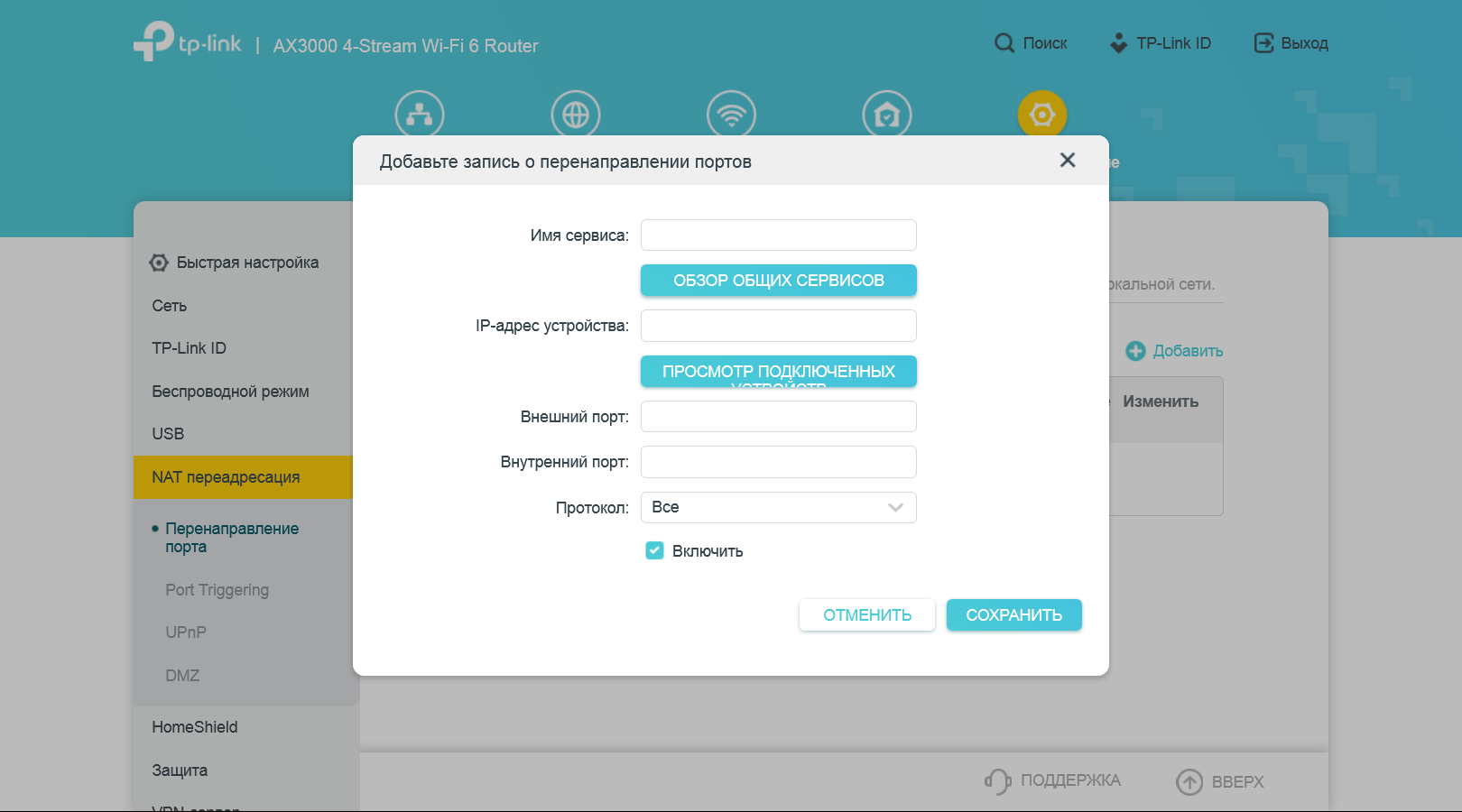 При необходимости обеспечения доступа из интернета к ресурсам локальной сети (при наличии «белого» адреса от провайдера) можно воспользоваться сервисами трансляции и переключения портов. Также в роутере есть поддержка UPnP и DMZ.