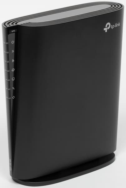 Корпус роутера выполнен из черного пластика. Большинство поверхностей матовые, но есть пара глянцевых элементов. Форм-фактор у рассматриваемой модели редкий и напоминает современные высотные здания — вертикальная башня со скругленными углами и расширяющаяся сверху. Габаритные размеры без учета крепления — около 190×60×200 мм.