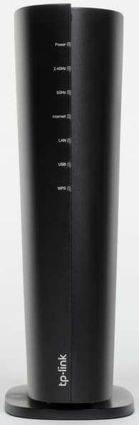 На нижней и верхней поверхностях расположены решетки вентиляции. Слева вертикально идет блок светодиодных индикаторов, в верхней части которого находится кнопка WPS. Светодиоды имеют преимущественно нейтральный белый цвет и не раздражают миганием. В случае отсутствия доступа к интернету соответствующий индикатор горит красным.