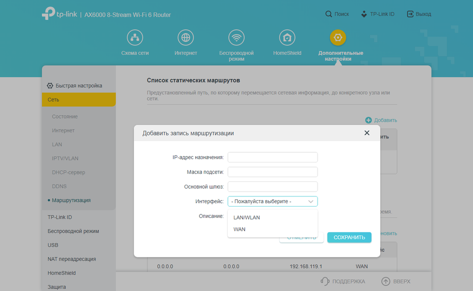 Есть также возможность добавления собственных маршрутов в одноименную таблицу, хотя в домашних сценариях это требуется редко.
