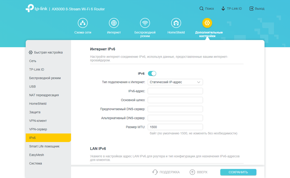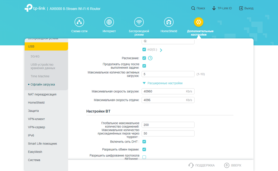 Как и следует из названия, доступ к остальным функциям прошивки находится в разделе «Дополнительные настройки». Здесь мы видим двухуровневое меню в левой части окна. Часть страниц является расширенными вариантами базовых настроек.