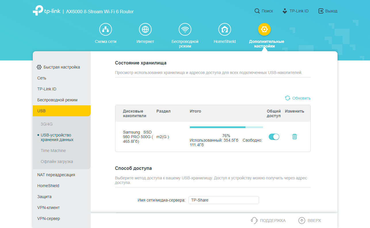 Вариантов работы с USB-накопителями больше: сервер с общими файлами с доступом по протоколам SMB и FTP, сервер резервных копий Apple Time Machine, медиасервер DLNA, автономная загрузка файлов из сетей p2p.