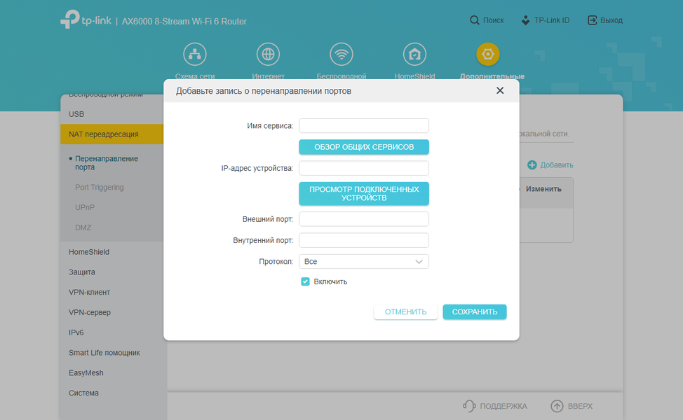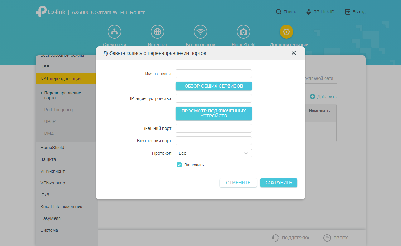 В разделе «NAT переадресация» представлен привычный набор — трансляция портов, переключение портов, включение UPnP и настройка DMZ.