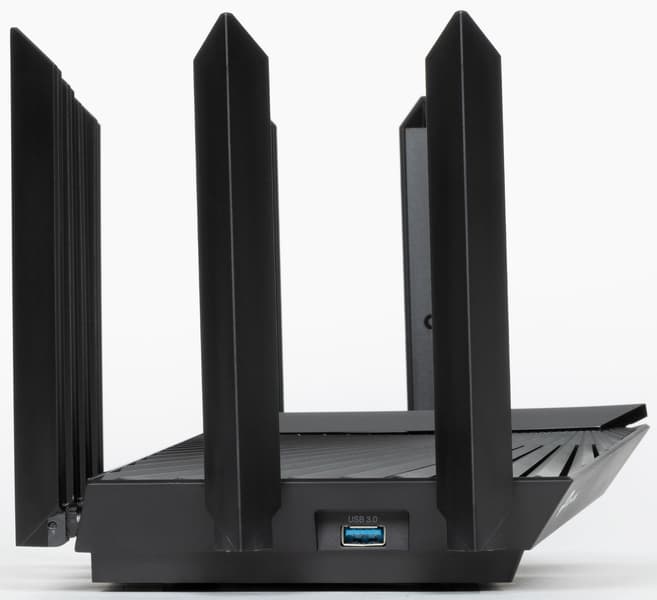 Для начала проверим реализацию проводных сетевых портов: в роутере использована конфигурация с выделенным коммутатором для гигабитных портов и отдельным портом 2,5 Гбит/с, и тут важно отсутствие «узких мест». В большинстве случаев порт 2,5 Гбит/с будет выполнять роль LAN, поскольку о провайдерах, способных предоставить канал более гигабита домашним потребителям, мы не слышали.