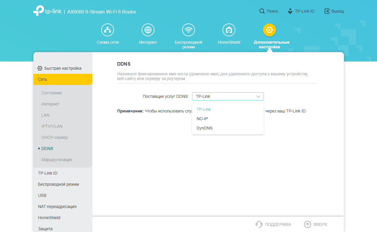 В случае наличия белого IP-адреса от провайдера можно воспользоваться встроенными клиентами DDNS для реализации внешнего доступа через доменное имя.