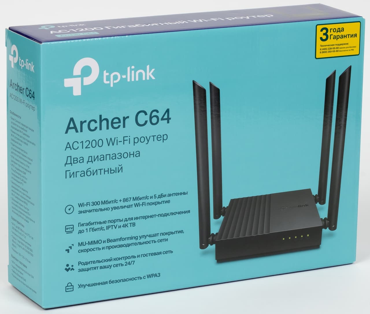 Бренд TP-Link давно и хорошо известен на нашем рынке, что не удивительно, поскольку компания является одним из крупнейших производителей сетевого оборудования. Для домашних пользователей производитель предлагает роутеры, mesh-системы, коммутаторы, адаптеры, устройства для подключения к сотовым операторам и другое оборудование. На момент подготовки статьи в разделе каталога по беспроводным роутерам пятого поколения насчитывалось почти два десятка продуктов от класса AC750 до класса AC5400. Но и этого разнообразия оказалось мало — недавно была представлена модель Archer C64, которая формально стала уже седьмой в классе AC1200. Правда, если подойти к оценке более внимательно, то окажется, что моделей с гигабитным проводными портами было только две с половиной. Сегодня, пожалуй, можно уже и не спорить о необходимости именно «гигабита по кабелю» в домашнем роутере. Учитывая высокие скорости Wi-Fi и существенное снижение цен, так сильно ограничивать себя в большинстве случаев уже не имеет смысла. Тем более, если учесть, что рекомендованная стоимость Archer C64 планируется на уровне 2500 рублей. При этом решения класса Wi-Fi 5 в настоящий момент являются наиболее востребованными в массовом сегменте, поскольку поддержка Wi-Fi 6 пока встречается относительно редко, и обычно лишь в достаточно дорогих продуктах.