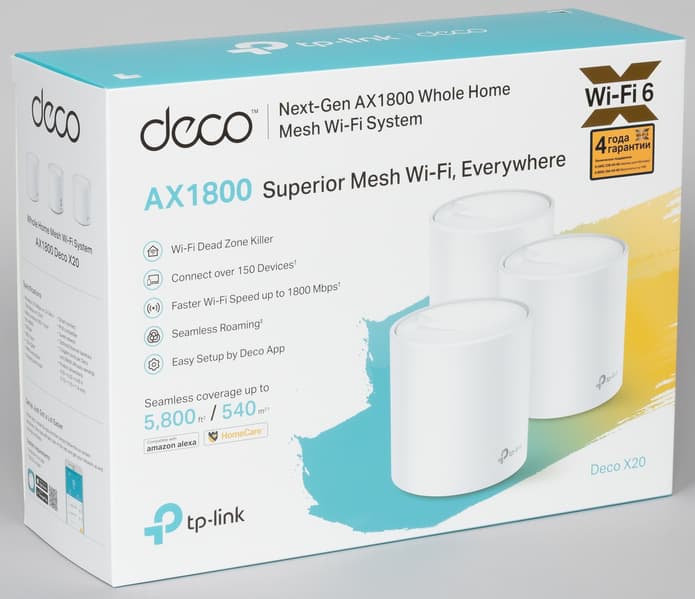 Не осталась в стороне и компания TP-Link, которая в начале этого года добавила в свою серию Deco модель X20, поддерживающую современный стандарт Wi-Fi 6 (802.11ax). Комплект из трех узлов, по информации производителя, позволяет обеспечить устойчивое покрытие на площади до 540 м², относится к классу AX1800, может обслуживать более 150 клиентов, имеет удобное мобильное приложение для настройки и дополнительные функции безопасности TP-Link HomeCare, включающие родительский контроль, антивирус и управление приоритизацией трафика.
