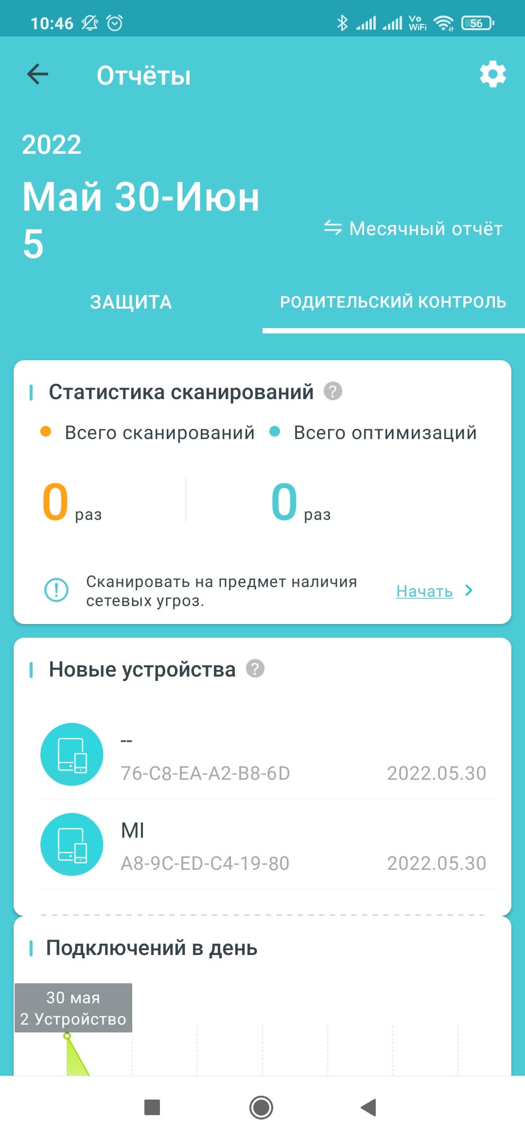 Про набор функций TP-Link HomeShield мы подробно писали в начале года и не будем здесь повторяться. Данная технология позволяет сгруппировать устройства по профилям для членов семьи. При этом в профиле предусмотрены настройки фильтрации контента, ограничения по времени работы в сети и другие параметры. Сервис имеет расширенную версию с платной подпиской. Дополнительно здесь есть настройки приоритизации и регулярные отчеты по использованию интернета.