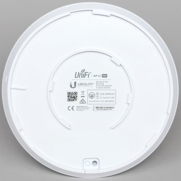 С обратной стороны находится информационная наклейка и ниша с разъемами подключения. Для AP AC Pro заявлена возможность эксплуатации и в условиях улицы, но на наш взгляд, лучше для этого использовать другие модели, в том числе и из-за диаграмм направленности встроенных антенн.