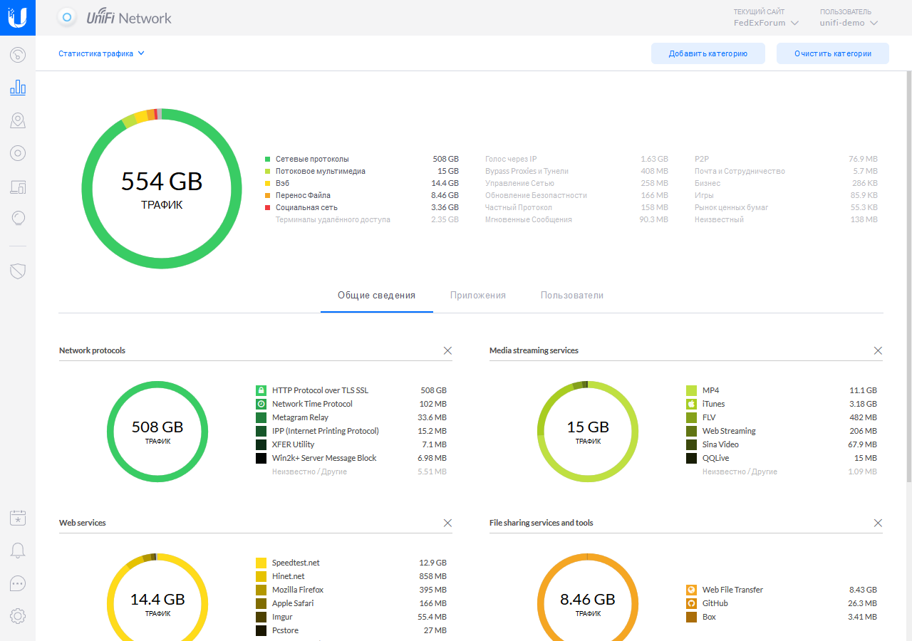 Кроме непосредственно настройки беспроводных сетей, контроллер также занимается мониторингом их состояния, включая число клиентов, объемы передаваемого трафика, занятость беспроводных каналов и так далее. Для крупных инсталляций это поможет в планировании развития и поиске узких мест.
