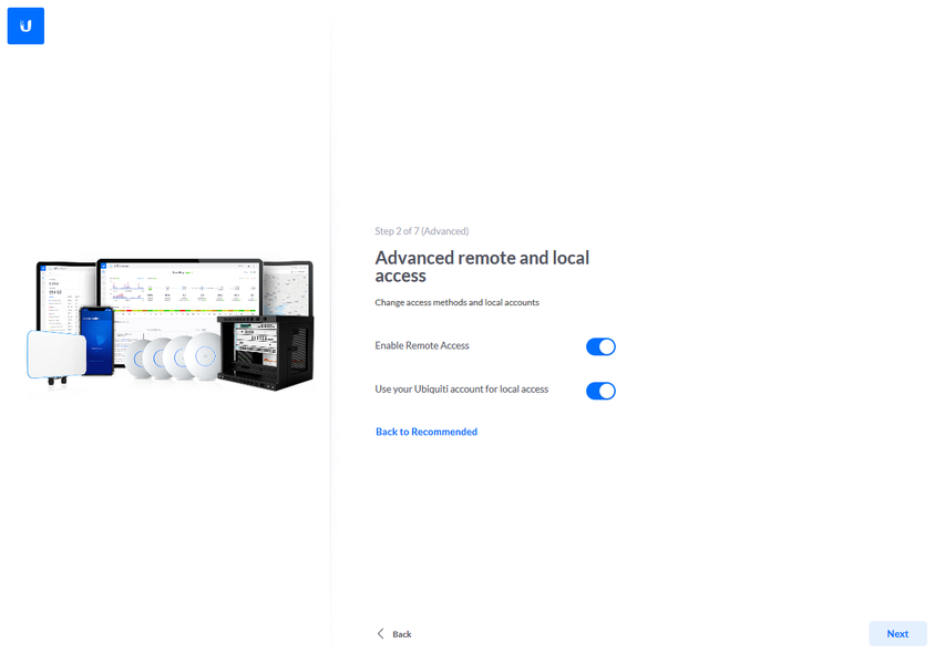 Но при необходимости вы можете перейти на этом шаге в режим расширенной настройки для использования локального аккаунта и отключения удаленного доступа. Второй момент — подключение точек доступа к контроллеру в мастере возможно только для устройств в состоянии заводских настроек или после сброса.