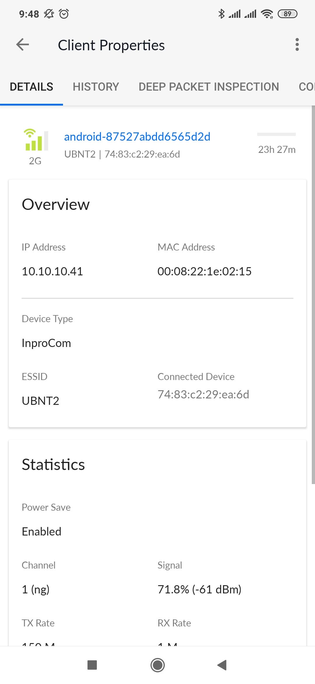 Страница «Clients» показывает подключенных клиентов с указанием сети, уровня сигнала и других данных. На вкладке «History» можно увидеть записи о прошлых подключениях и объемах трафика.